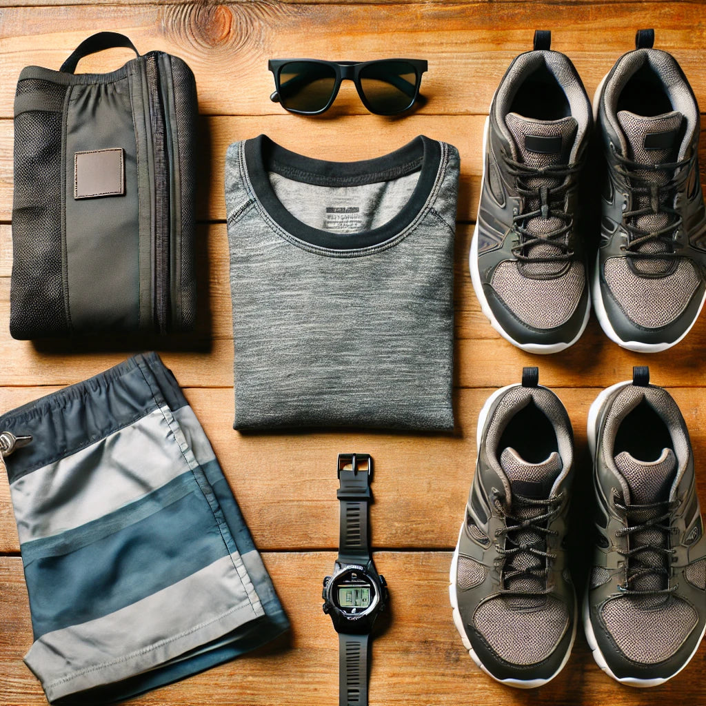 - Bottom: Quick-dry board shorts
