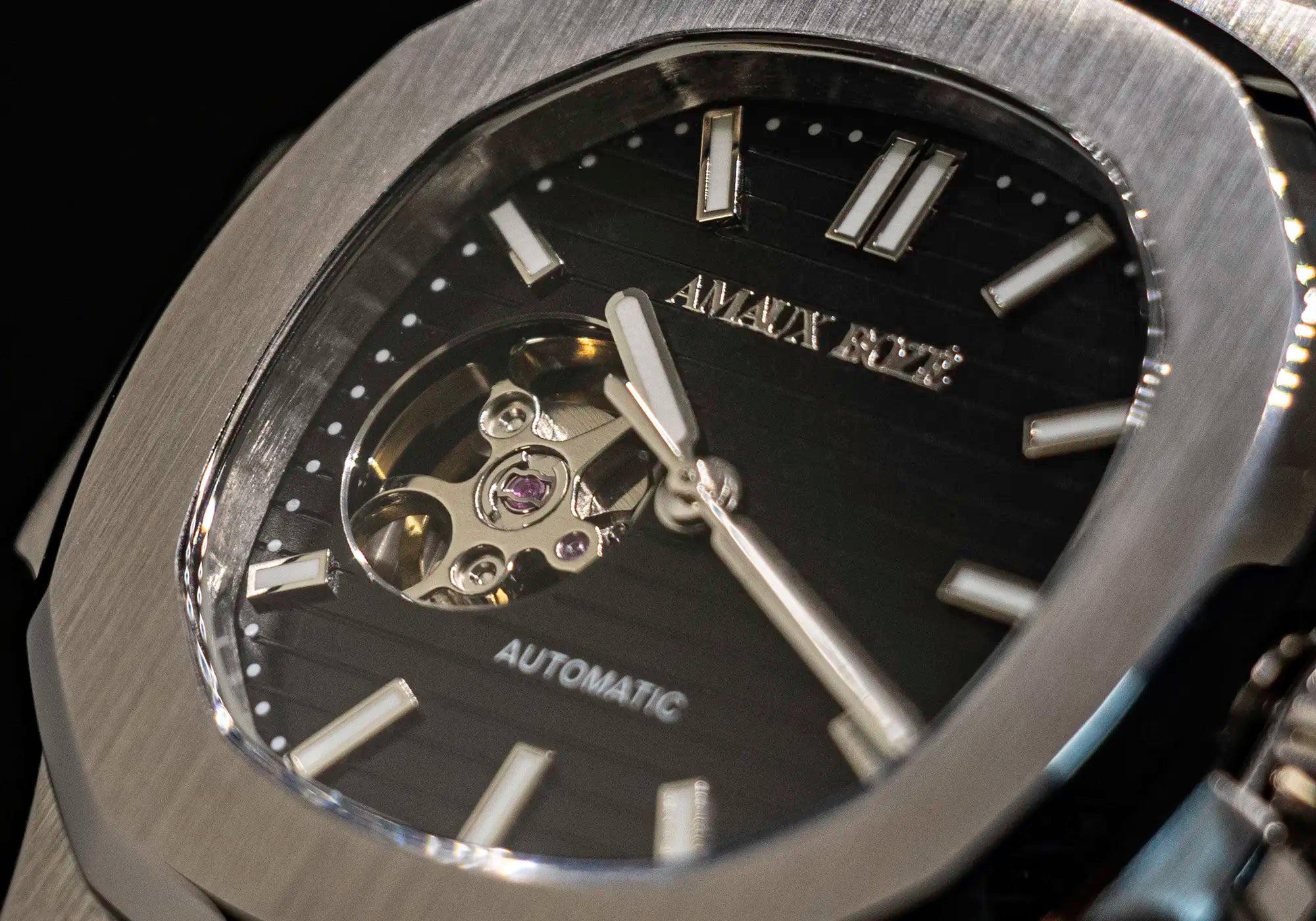 - Silver "Amaux Bozé" logo at the top and "Automatic" to reinforce the watch's mechanical nature