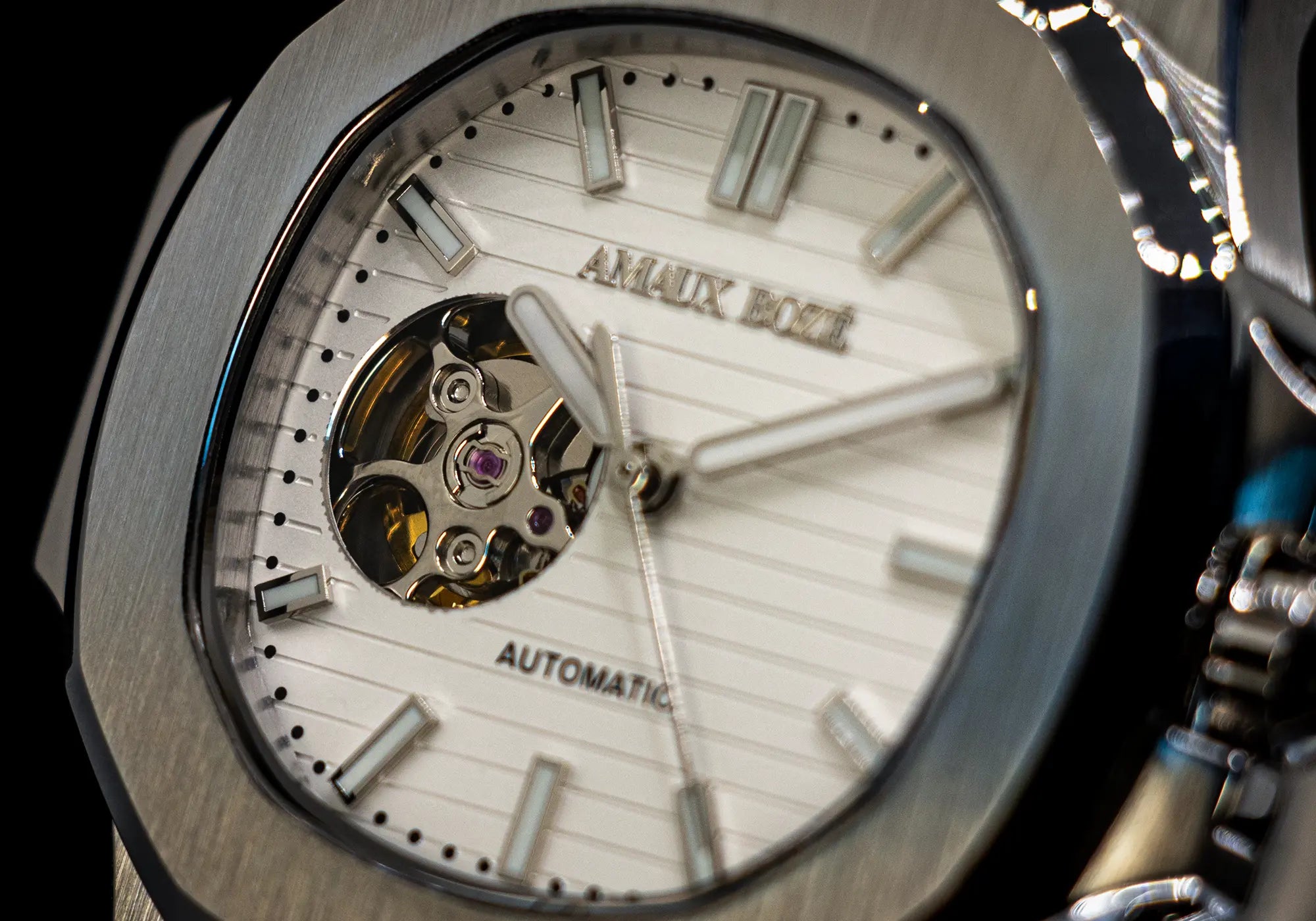 - Silver "Amaux Bozé" logo at the top and "Automatic" to reinforce the watch's mechanical nature