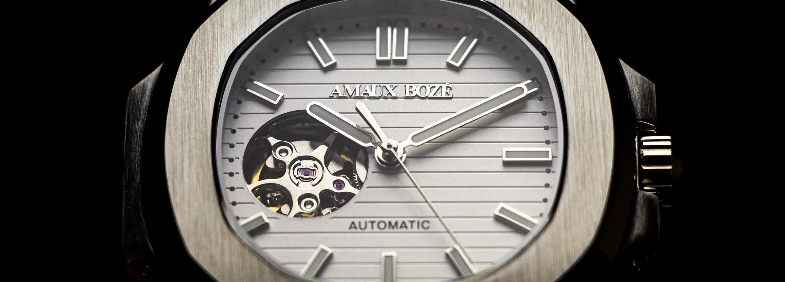 - Silver "Amaux Bozé" logo at the top and "Automatic" to reinforce the watch's mechanical nature